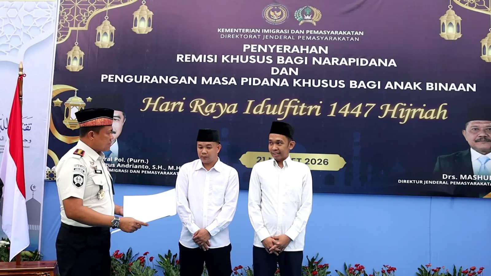 Usai pelaksanaan salat, Lapas Kelas IIA Bekasi memberikan Remisi Khusus Idul Fitri kepada warga binaan yang telah memenuhi syarat administratif dan substantif sesuai ketentuan yang berlaku.