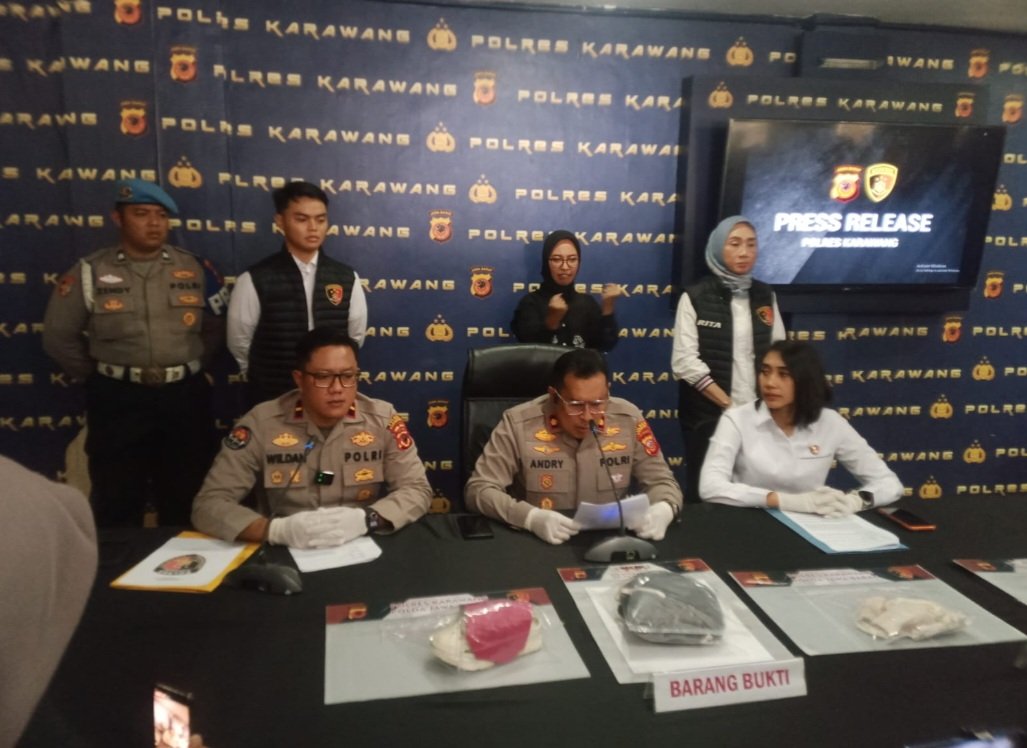 Konferensi pers di Mapolres Karawang.