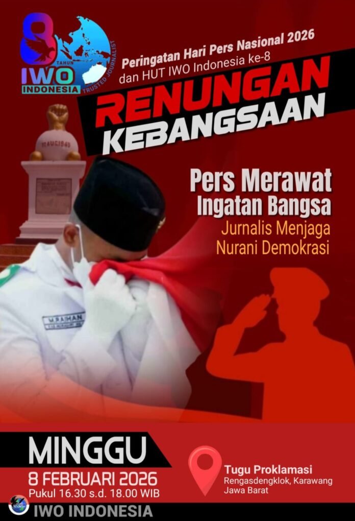 KARAWANG – Dewan Pimpinan Daerah Ikatan Wartawan Online Indonesia (DPD IWO Indonesia) Kabupaten Karawang akan menggelar Renungan Kebangsaan di Tugu Kebangkitan Rengasdengklok, Kabupaten Karawang, Minggu (8/2/2026) sore.
