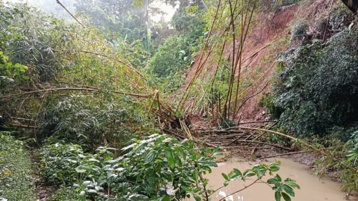 Akibat hujan deras yang mengguyur selama tiga hari terakhir, material longsor yang menyeret rumpun bambu menutup total aliran Saluran Sekunder (SS) Leuwinangka di kawasan Kampung Wera, Kelurahan Dangdeur, Kecamatan Subang, Jumat (26/12/2025).