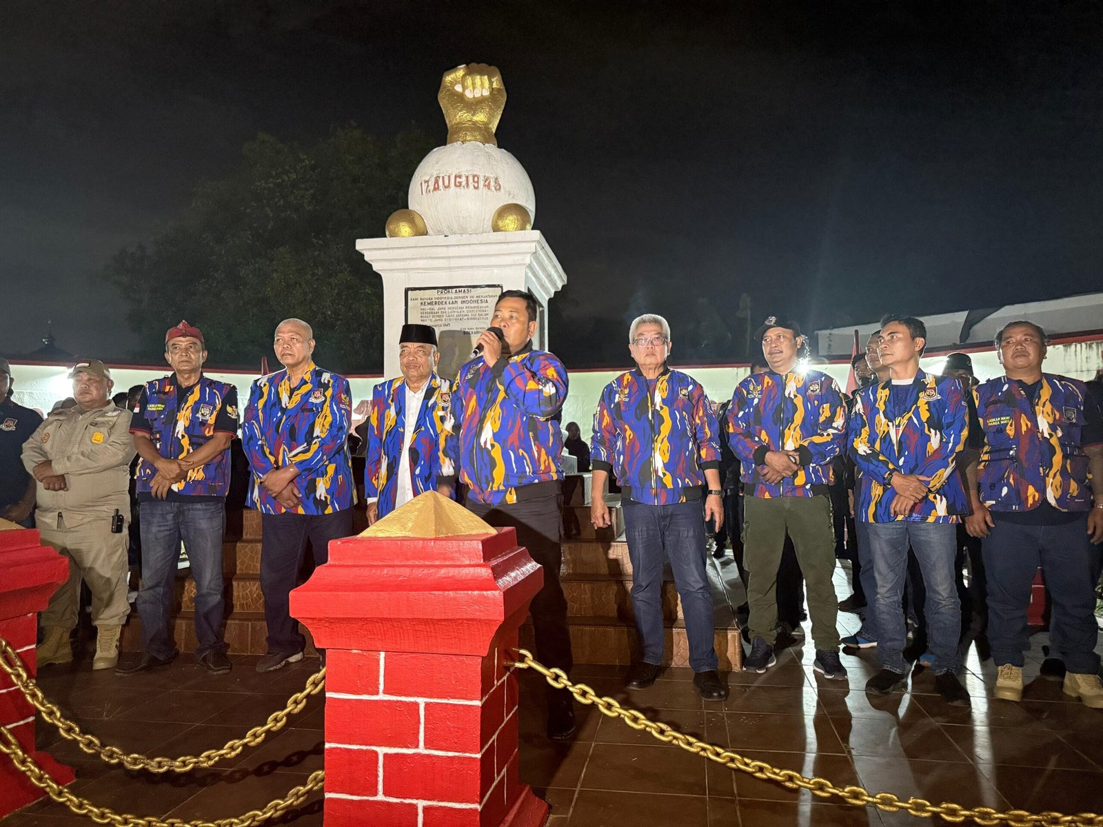 Tiba pukul 21.00 WIB, kegiatan seremonial di Monumen Kebulatan Tekad diawali dengan kegiatan seremonial menyanyikan lagu Indonesia Raya dan Mars Laskar NKRI.