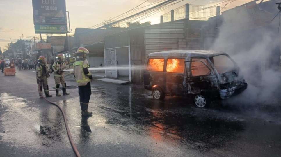 petugas mendapati sebuah mobil bermuatan BBM dalam kondisi terbakar. Berdasarkan hasil pemeriksaan awal, api diduga dipicu oleh percikan dari mesin kendaraan yang kemudian menyambar jeriken berisi BBM di dalam mobil.