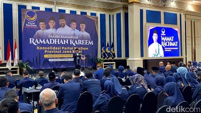 “Jabar bertekad tahun 2029 posisi urutan ketiga, baik DPR Provinsi, RI dan daerah, mudah-mudahan ini bisa terlaksana,” kata Mamat dalam kegiatan Konsolidasi Partai NasDem Jabar di Bandung, Sabtu (7/3/2026).