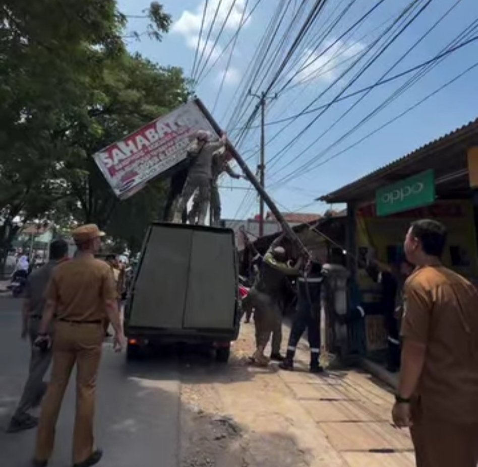 Dalam operasi tersebut, petugas menurunkan sejumlah reklame dan spanduk yang tidak memiliki izin maupun dipasang di lokasi yang tidak semestinya.