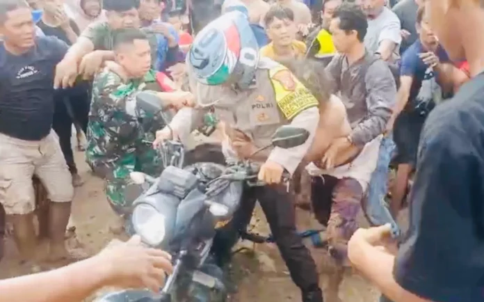 KARAWANG – Sebuah video viral beredar di media sosial yang memperlihatkan seorang warga Kecamatan Tirtajaya sedang berusaha diamankan anggota kepolisian dan anggota TNI, karena hendak dihakimi massa.